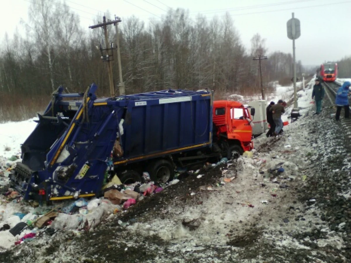 Произошло столкновение мусоровоза "Камаз" и пригородного пассажирского поезда, следовавшего по маршруту "Урванка-Черепеть".