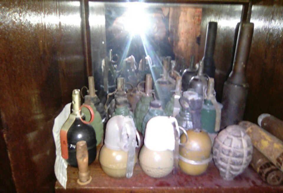 Полицейские обнаружили и изъяли 97 патронов, винтовку Мосина, 2 пистолета иностранного производства, гранаты и другие боеприпасы. Предположительно, все они найдены на территории Тульской области и соседних регионов.