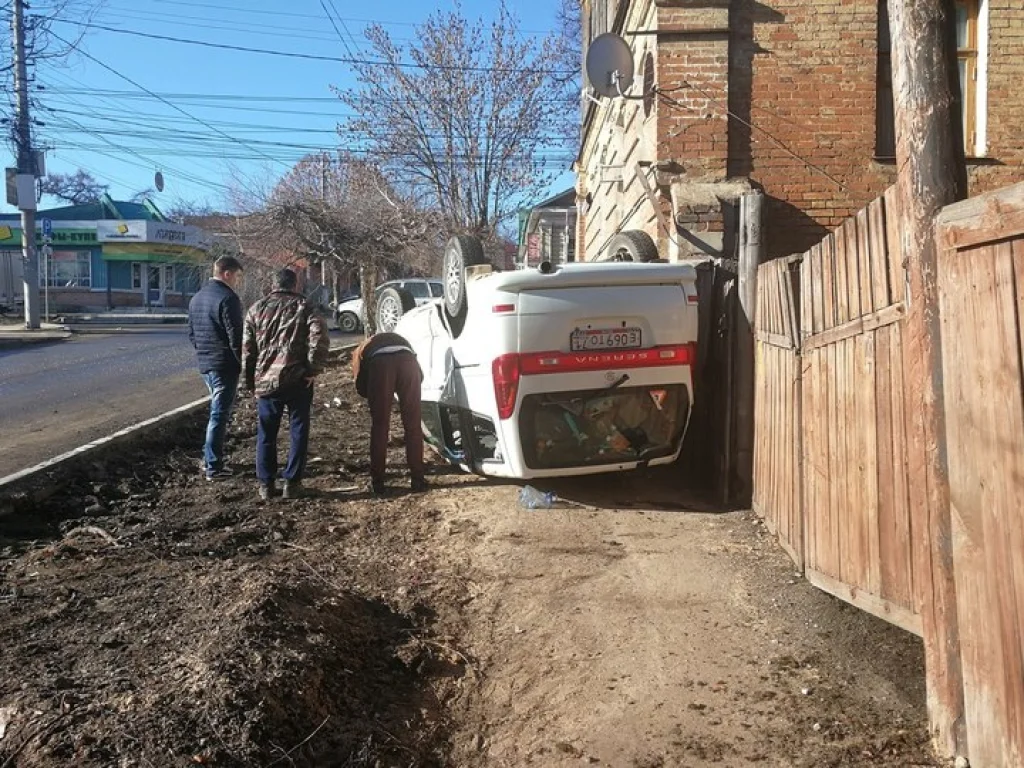 В результате столкновения иномарку подбросило и вынесло к забору частного дома, после чего машина перевернулась