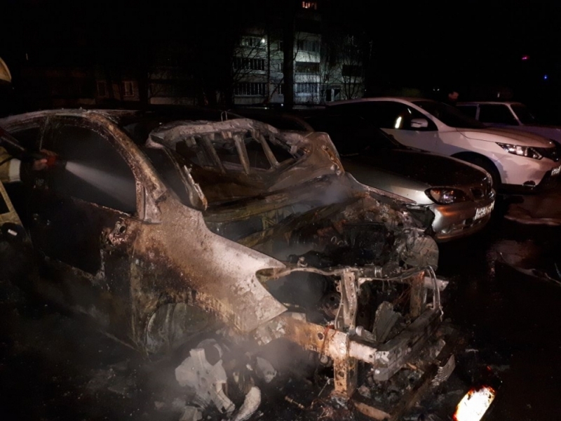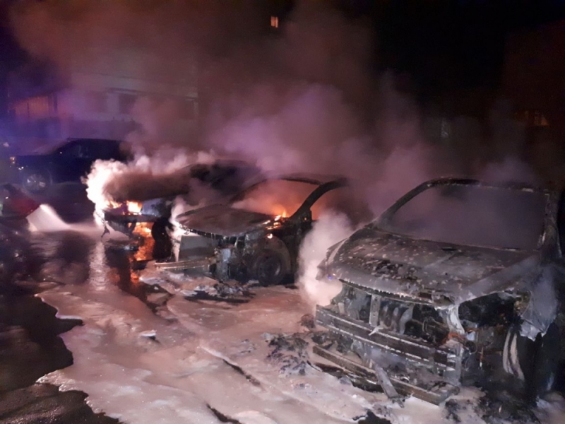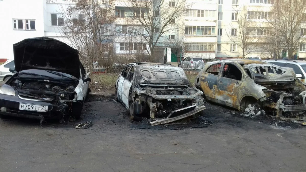 Ночью в Пролетарском районе Тулы сгорели сразу четыре иномарки. ФОТО
