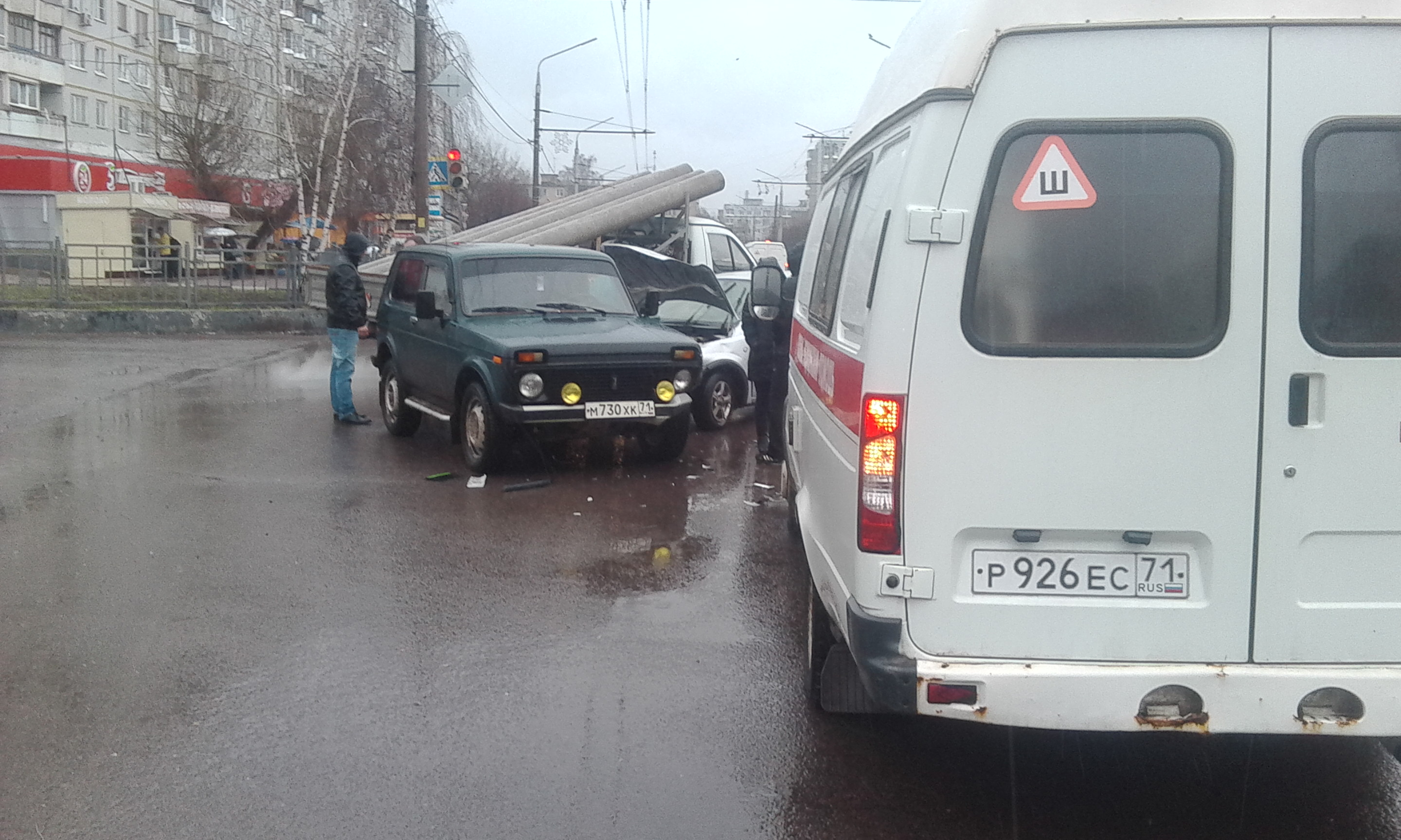 Как сообщает наш корреспондент, в Туле на перекрестке ул. Пузакова и ул. Демидовской произошло серьезное ДТП. Предположительно, дорогу не поделили «Нива» и еще один автомобиль, марку которого пока установить не удалось, поскольку машина сильно разбита.