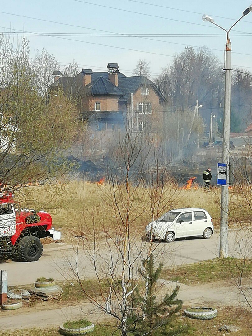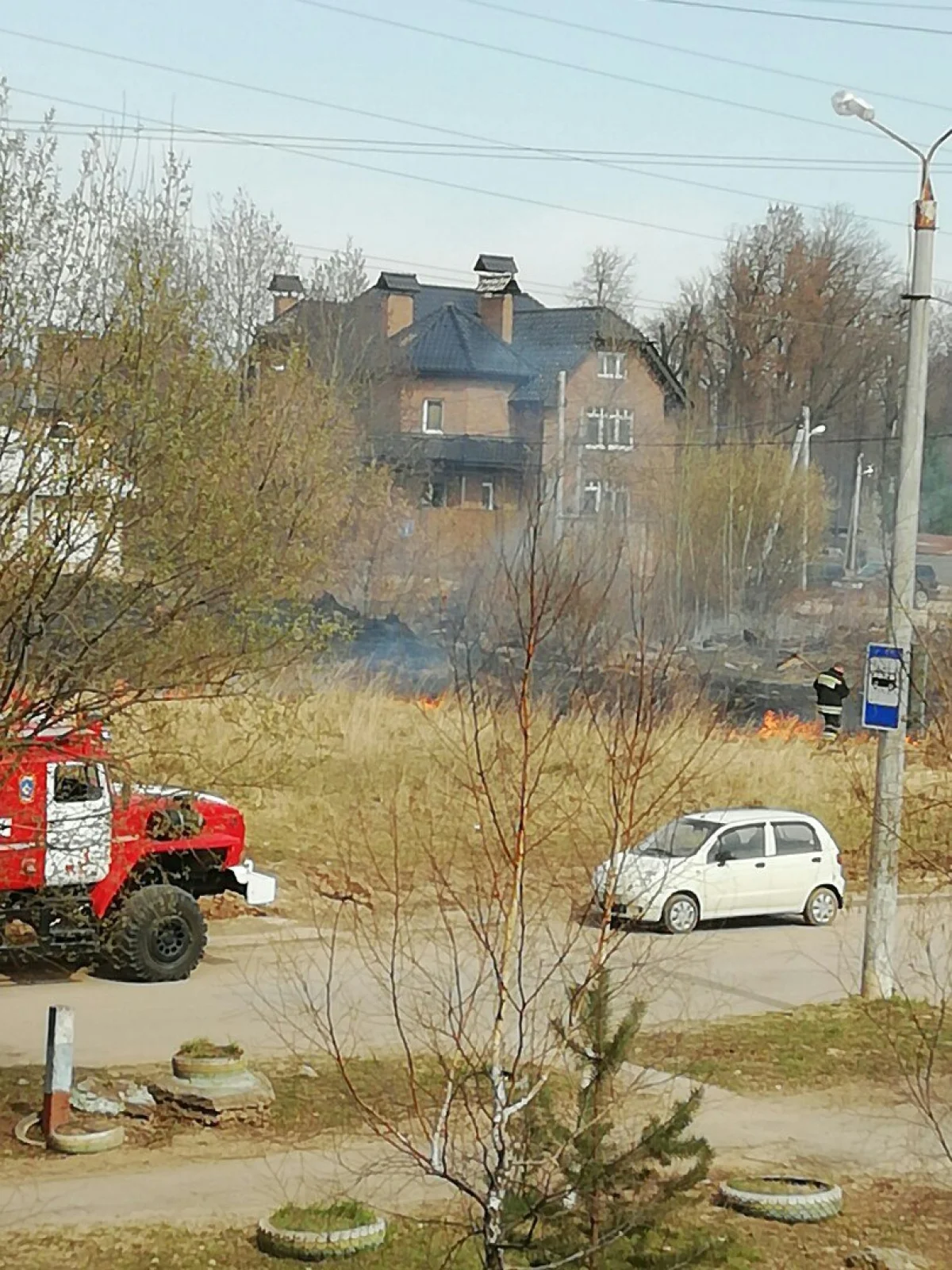 В Туле на ул. Бондаренко пламя от горящей травы подобралось вплотную к жилым домам