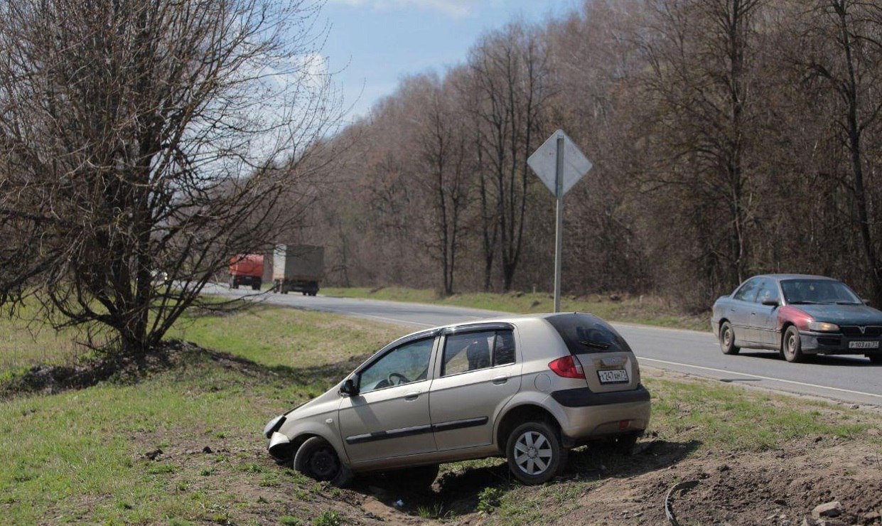 На трассе не смогли разъехаться «Рено» и «Хёндэ». В результате столкновения последний съехал в кювет и воткнулся «мордой» в землю.
