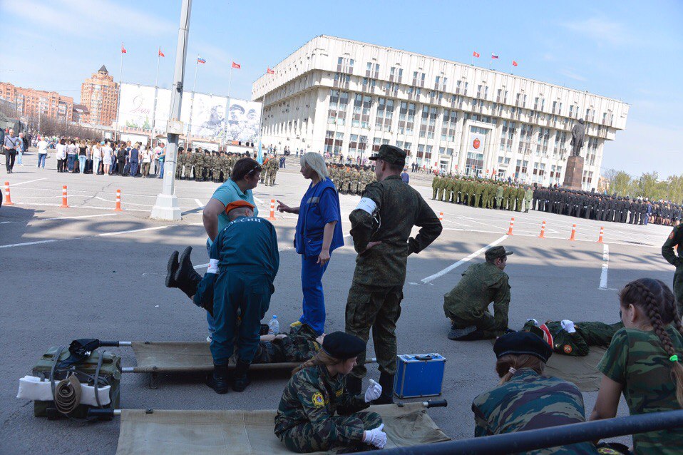 Как сообщает наш корреспондент, на площади Ленина во время репетиции парада Победы произошло ЧП — сразу нескольким суворовцам и кадетам юридического колледжа стало плохо. Предположительно, дети около 45 минут стояли по стойке смирно, в результате чего перенапряглись и упали в обморок. К слову, на улице сейчас +27° жары, а на раскалённом асфальте под солнцем и того больше.