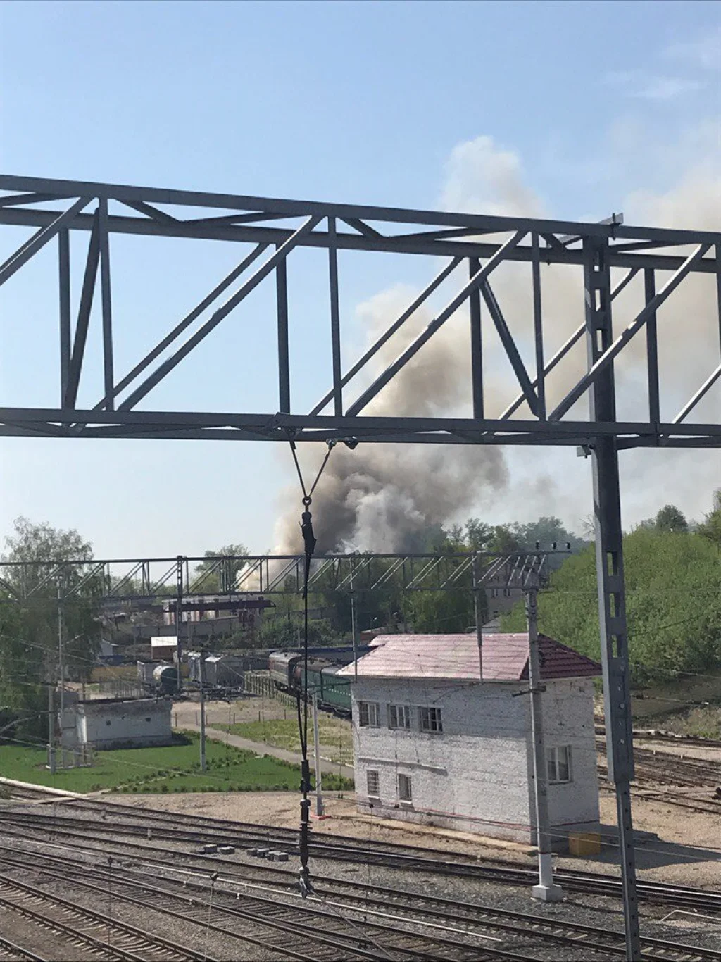 В бывшем здании железнодорожной больницы пожар возник в около полудня. На место выехали пять пожарных расчетов.