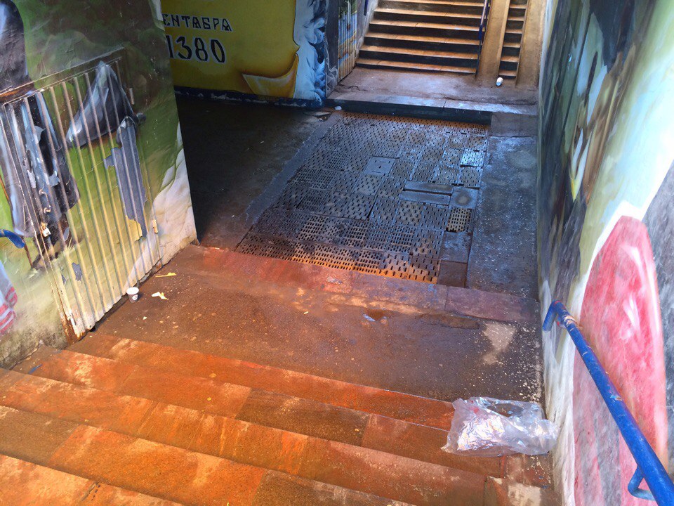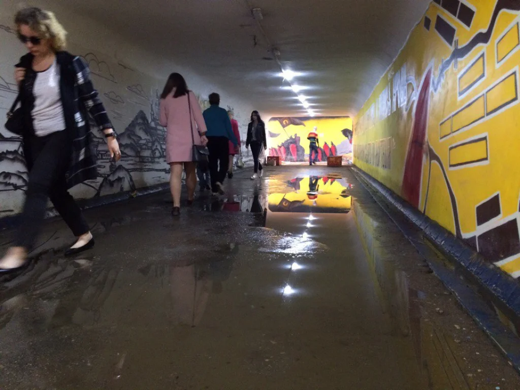 С утра весь переход был затоплен практически под потолок. Сейчас на месте происшествия работают коммунальные службы.