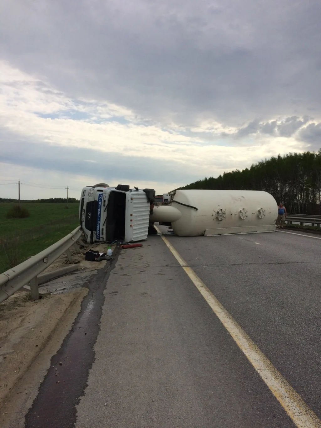 7 мая в 15:10 на 165-м км трассы М-4 «Дон», в Веневском районе, перевернулась автоцистерна «Хендай».
