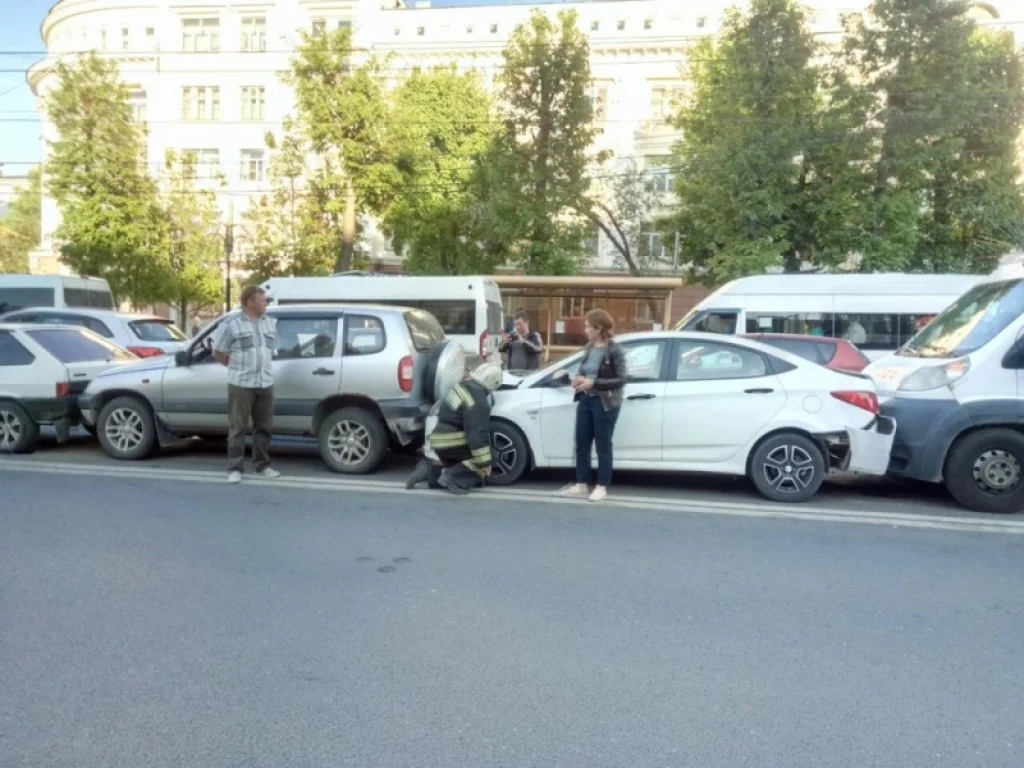 Как мы сообщали ранее, минувшим вечером около 18.00 на пр. Ленина паровозиком столкнулись сразу 5 автомобилей: маршрутки №30, «Hyundai Solaris», «Chevrolet Niva», «ВАЗ-2109» и «Mercedes-Benz E-класса». ДТП спровоцировал водитель автолайна. Все машины получили значительные повреждения.