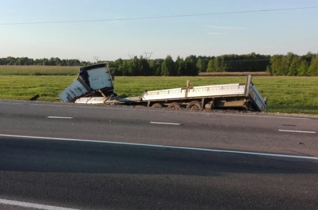 Под Тулой фура завалилась в кювет после столкновения с «Газелью»