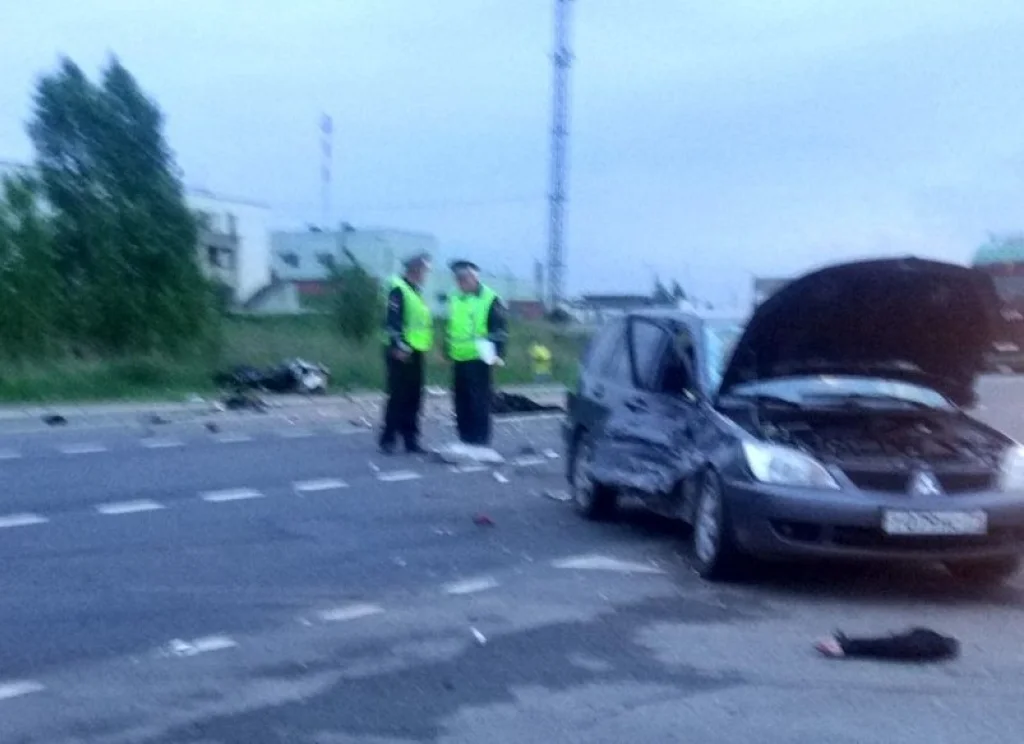 Вечером 19 мая на трассе М2, недалеко от д. Маслово, столкнулись «Мицубиси Лансер» и мотоцикл. В