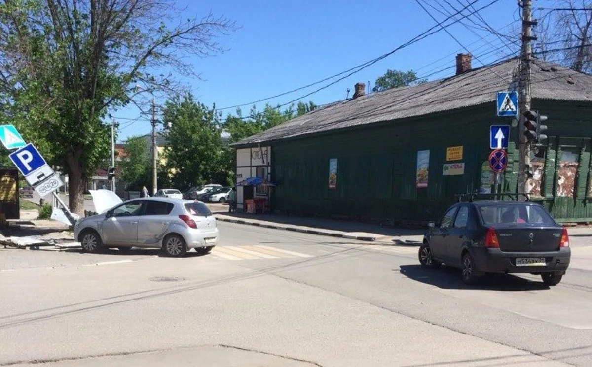 Авария произошла 21 мая на пересечений улиц Каминского и Жуковского. Водитель иномарки, предположительно «Рено», врезался в столб с дорожными знаками.