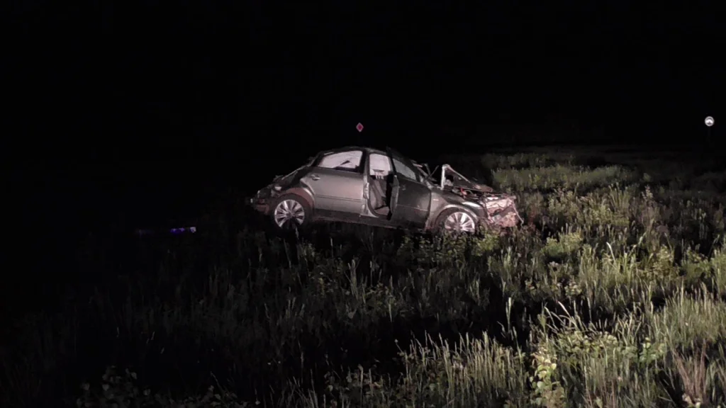 Ночью под Тулой молодой человек перевернулся на «Пассате»