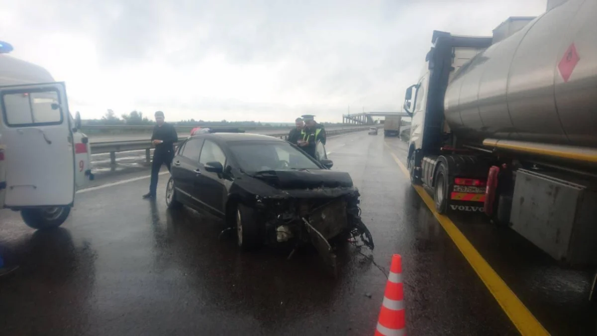 Авария произошла 22 мая в 08:45 на 195-ом километре трассы М-4 «Дон». Водитель автомобиля «Хонда Цивик» предположительно не справился с управлением и влетел в дорожное ограждение, после чего столкнулся с автоцистерной «МАЗ 544018».