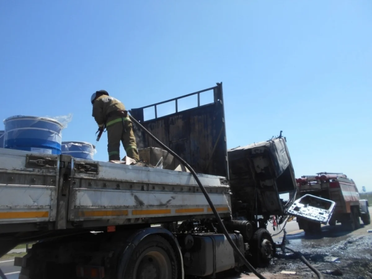 28 мая в 13:29 на пульт диспетчера службы спасения поступило сообщение о возгорании грузовика «МАЗ», расположенного на 236-м км трассы М-4 «Дон».