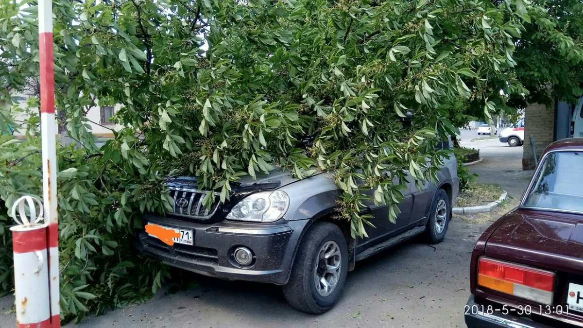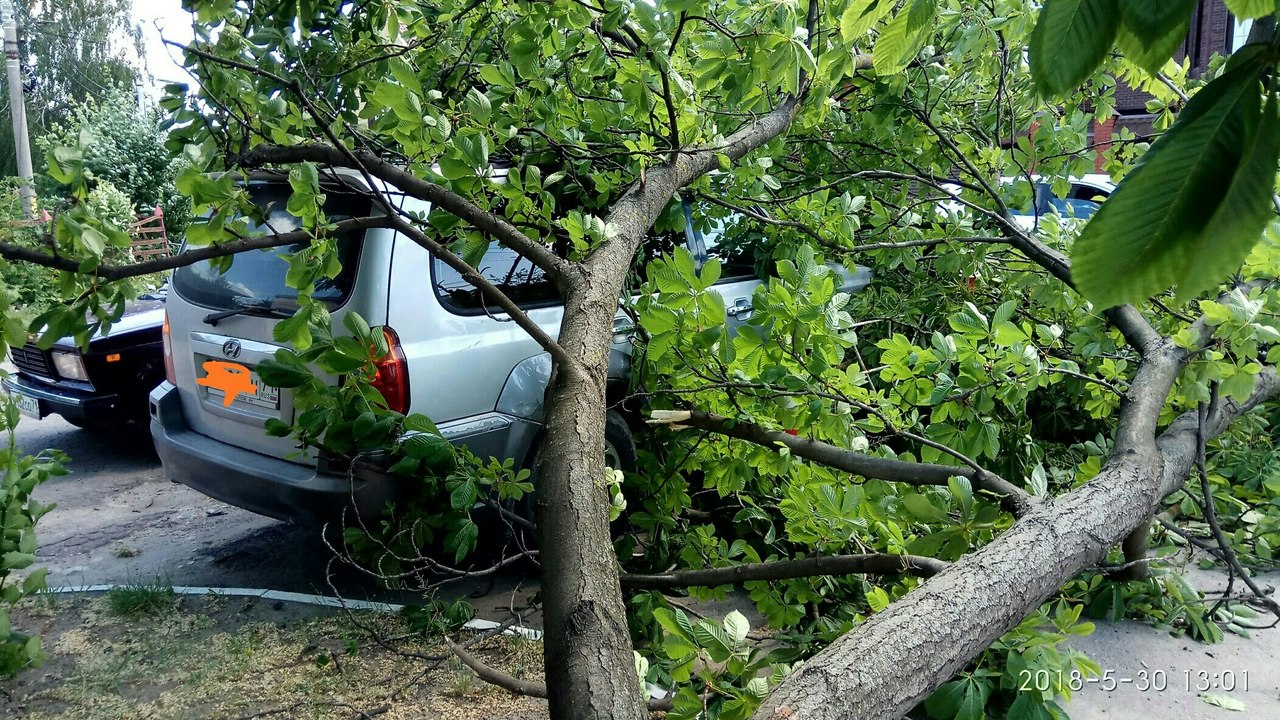 Туляки продолжают делиться в соцсетях последствиями ураганного ветра. На этот раз пострадал внедорожник «Хендай», припаркованный в одном из дворов. На него рухнул каштан.