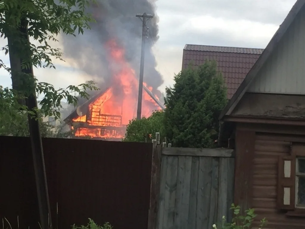Двухэтажное деревянное здание вспыхнуло в Пролетарском округе в районе улиц Каракозова и Патронной сегодня около полудня.