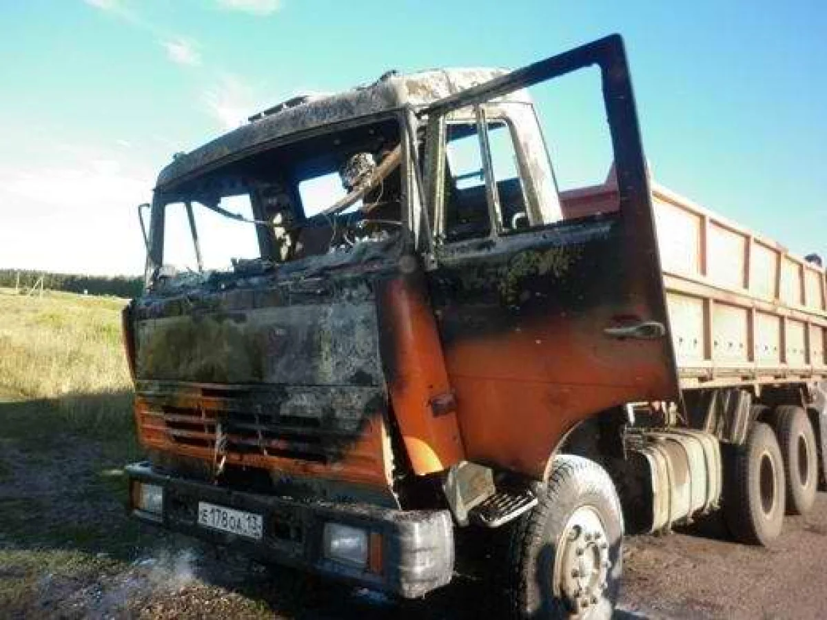 Пострадавших нет. В результате происшествия выгорела кабина автомобиля, сгорели колеса. Причина пожара устанавливается.