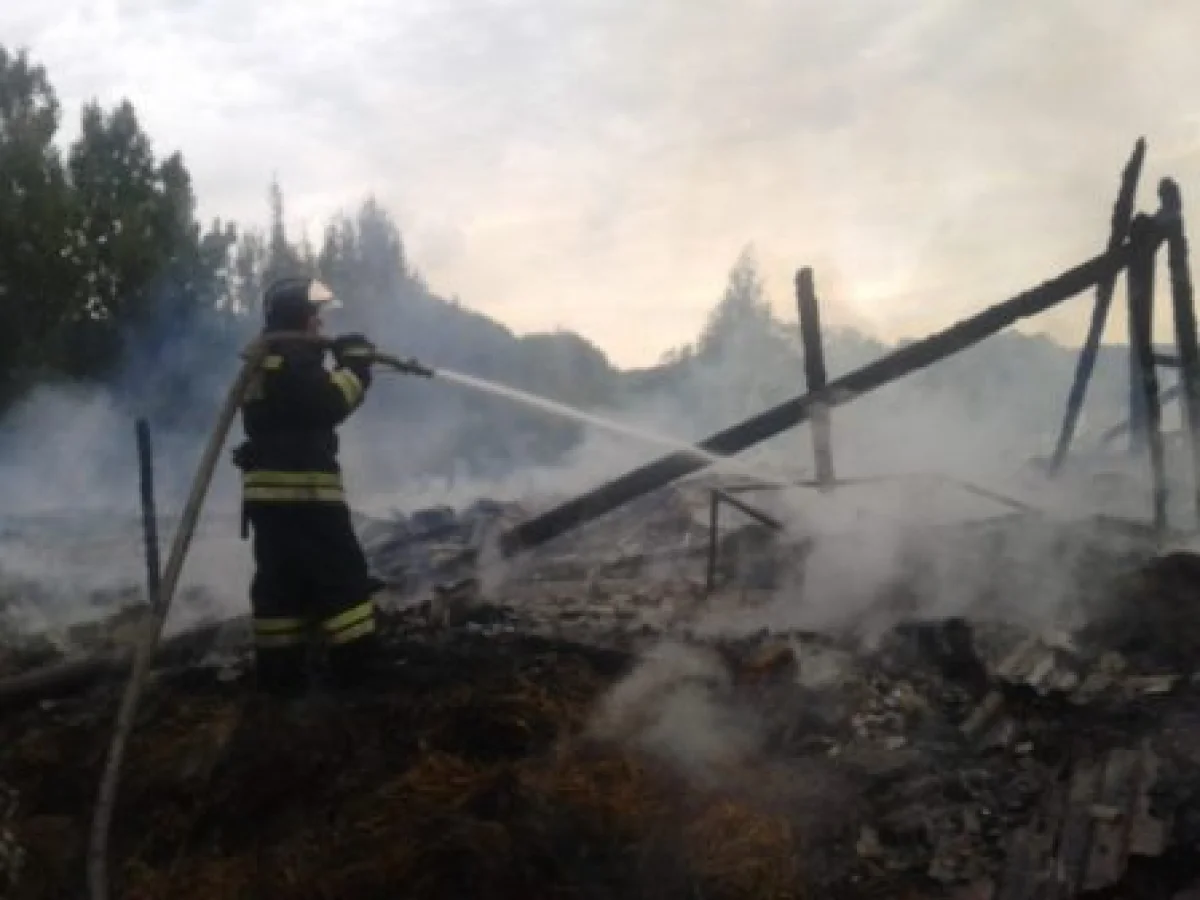 В результате происшествия деревянное строение лишилось крыши и выгорело изнутри.
