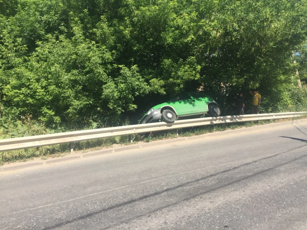 Вот так занесло: «Ниссан» улетел в кусты, «перепрыгнув»дорожное ограждение