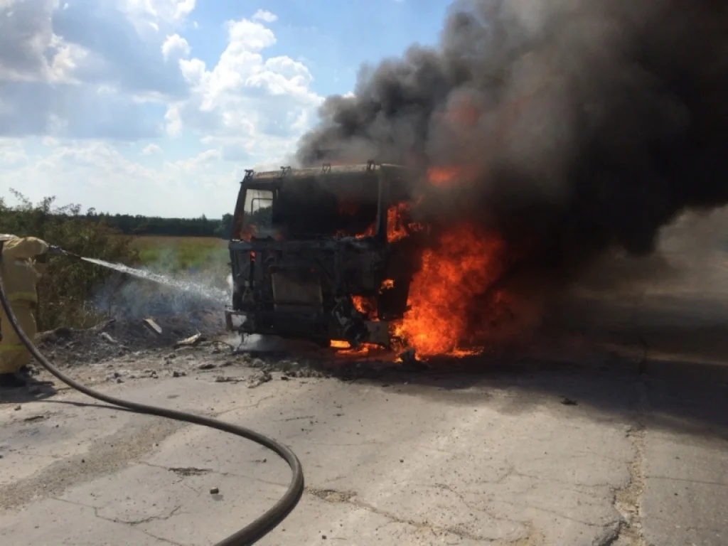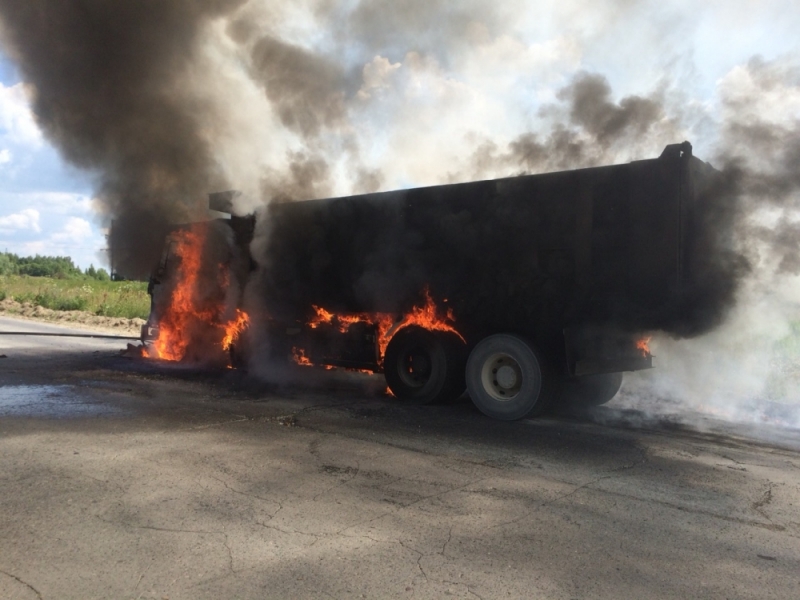 В результате самосвал полностью сгорел. Пострадавших нет.