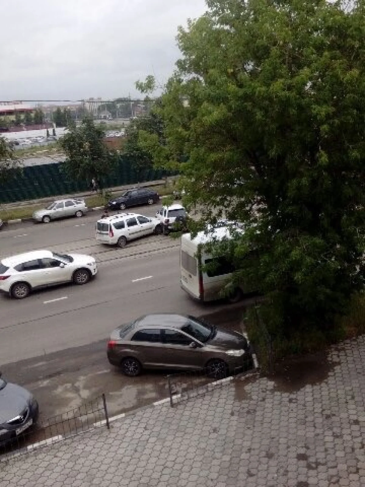 На Демидовской плотине столкнувшиеся машины перегородили трамвайные пути