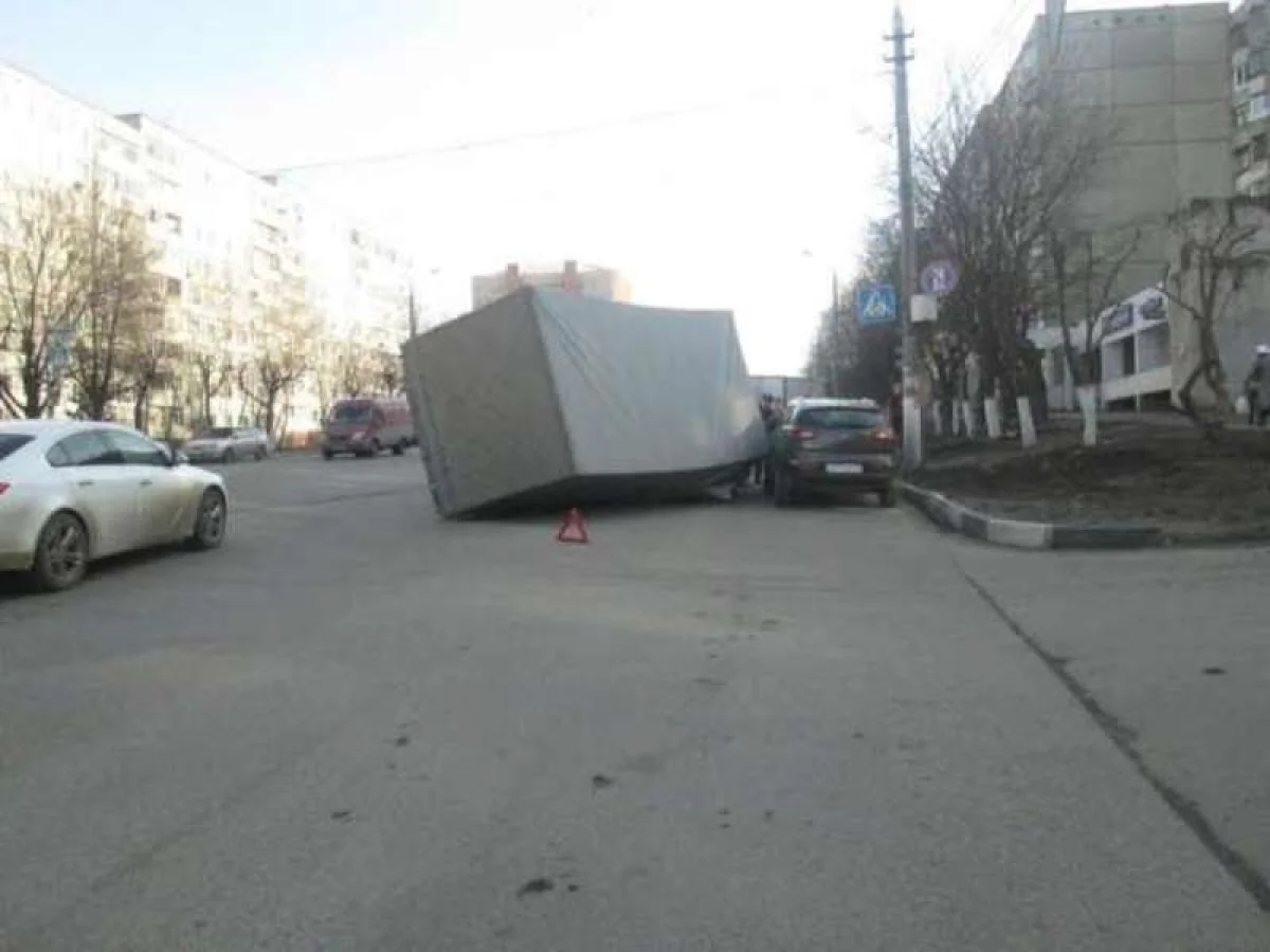 В Туле грузовик опрокинулся на припаркованный автомобиль