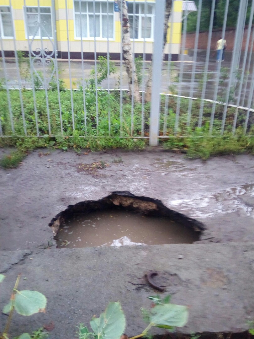 На другой улице асфальт попросту провалился, и полуметровые ямы тут же заполнились водой.