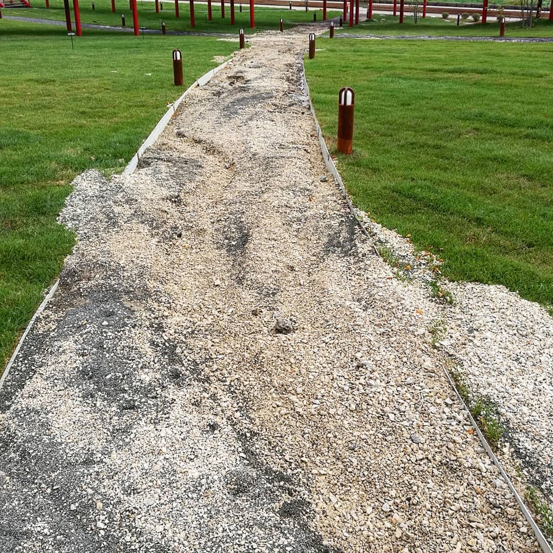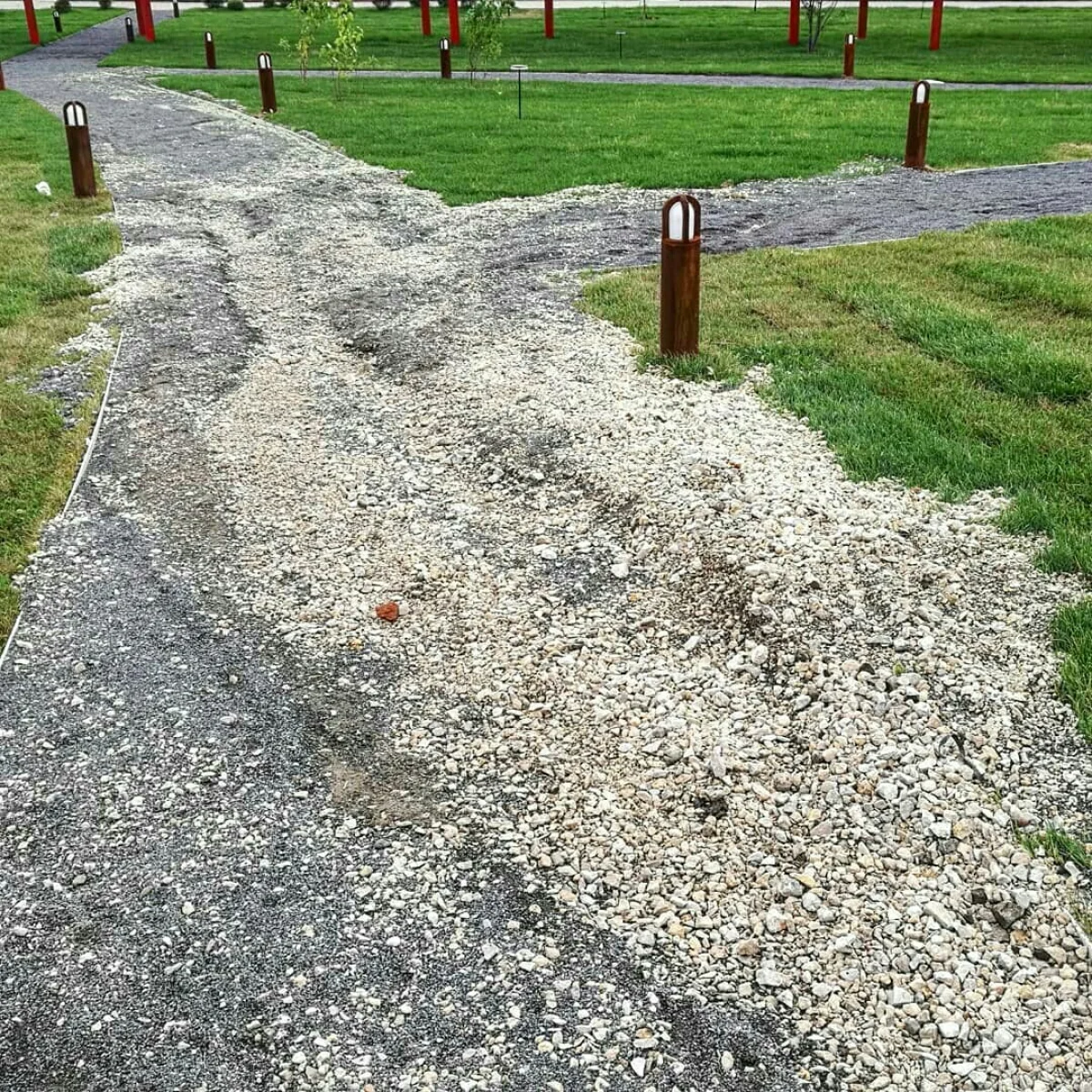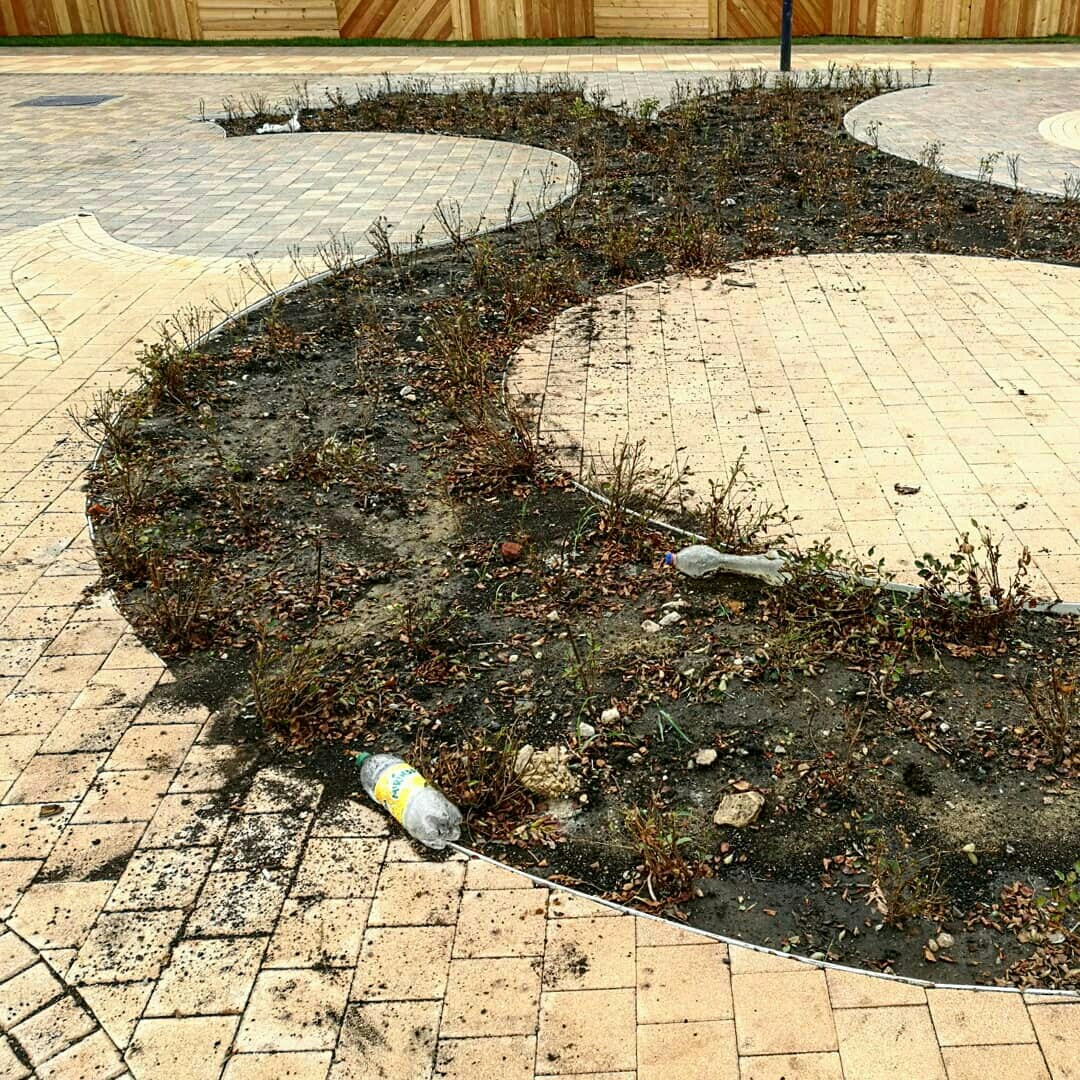 Судя по всему, дорожки просто не успели выложить тротуарной плиткой, и прошедший накануне потоп смыл все подготовленное основание. Однако валяющий на газонах мусор — явно дело рук человека, и стихия здесь не при чем.