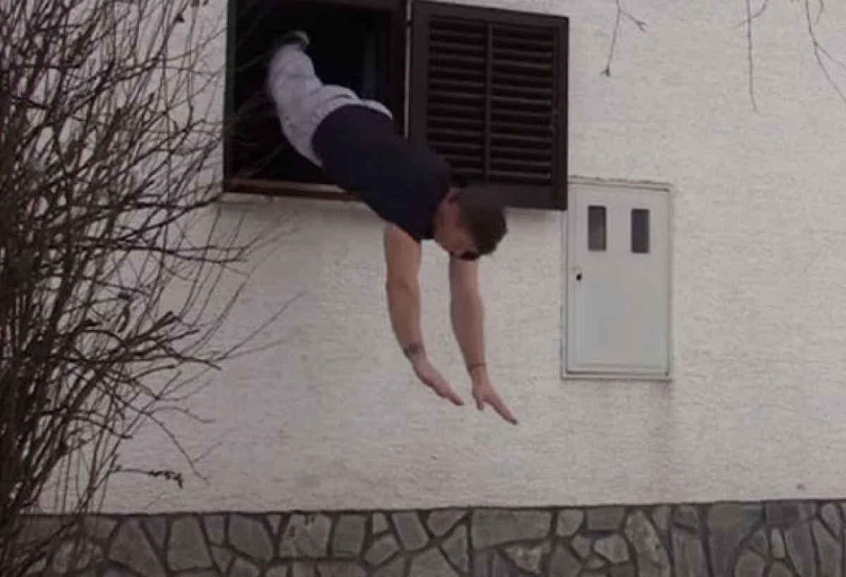 Во время очередной попытки бегства должник прыгнул прямо в руки поджидающего его пристава.