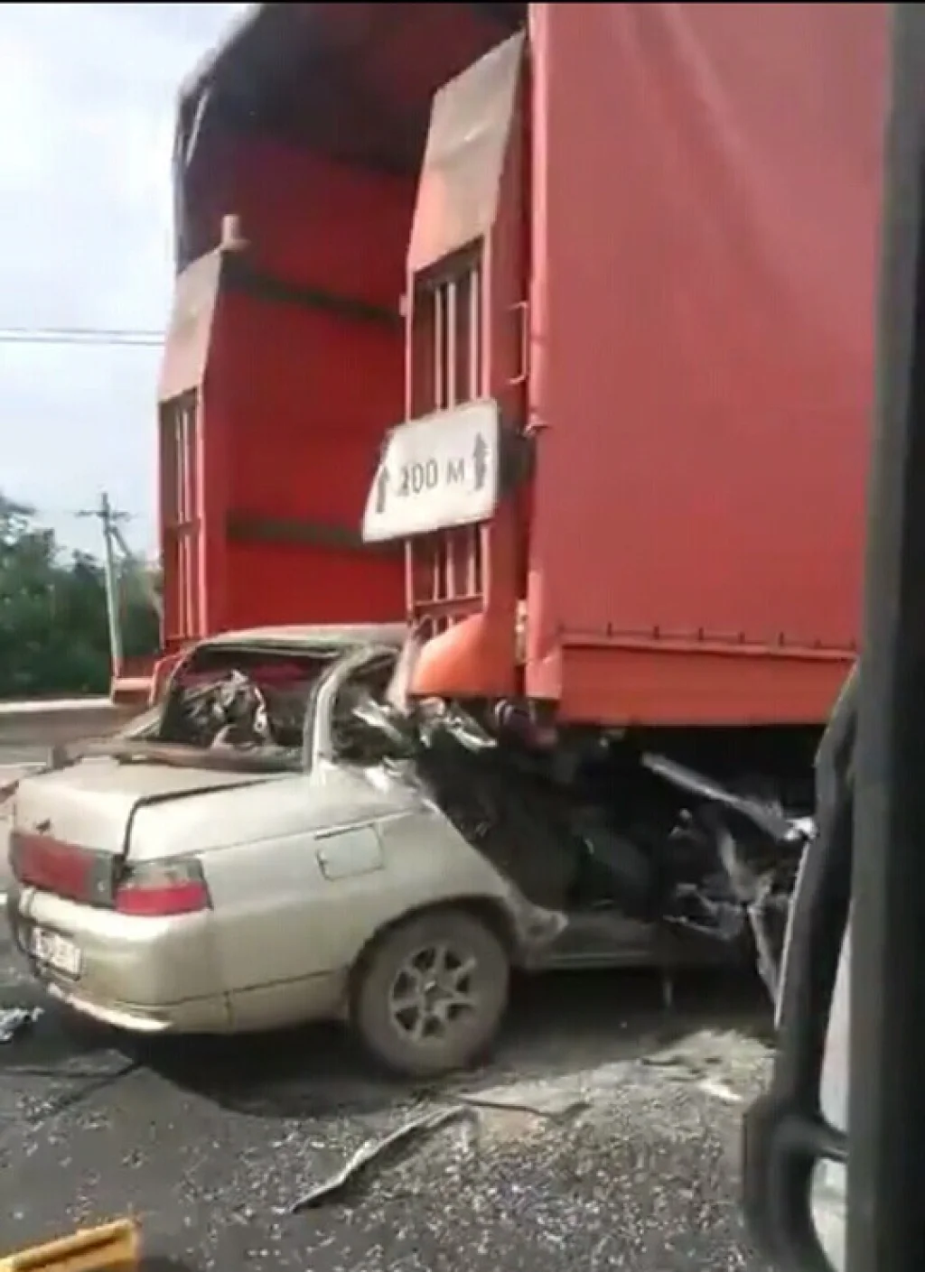 Авария произошла 26 июля в в 09:45 на 433-м км федеральной трассе М-4 «Дон» в Липецкой области. «ВАЗ-2110» на полной скорости протаранил попутный автомобиль дорожных служб. Легковушка буквально влетела под грузовик - от неё осталась лишь задняя часть кузова.
