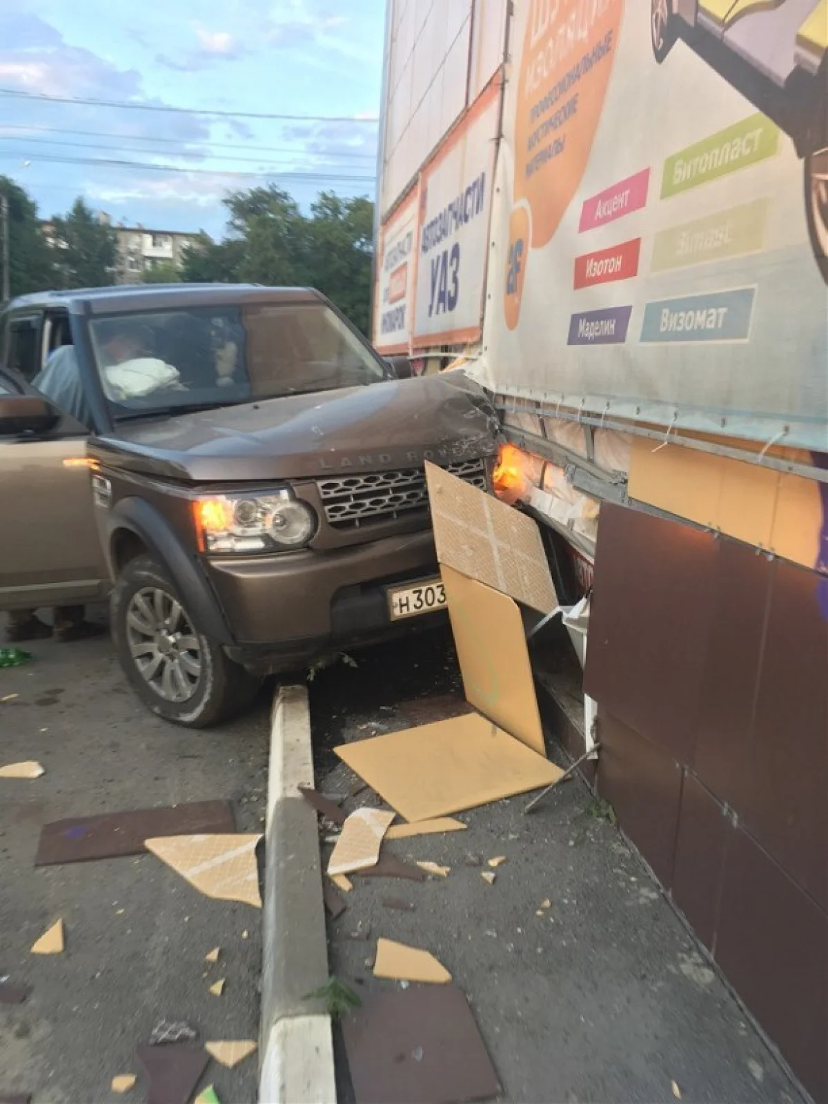 Как сообщают очевидцы, утром 27 июля в Новомосковске произошло ДТП. Женщина, находящаяся за рулём «Лэнд Ровера», не справилась с управлением и врезалась в здание торгового центра.