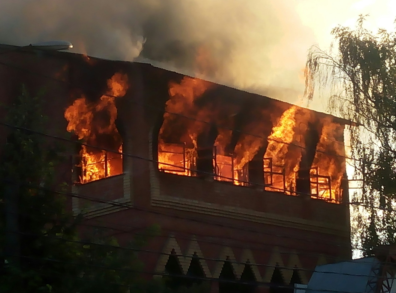 - Неэксплуатируемое здание на пересечении улиц Белкина и Мира полыхает, - пишет тулячка. - Уже сгорел весь второй этаж, рушится крыша, падают куски железа, дым доносится до Центрального парка и улицы Белкина.