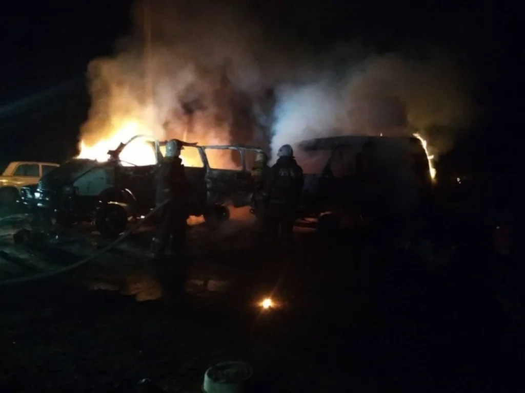 Ночью 2 августа на пульт диспетчера «Единой службы спасения-112» поступило сообщение о возгорании сразу четырёх автомобилей: двух «Газелей», «ВАЗ-2102», «Саньенг Карандо» Все они были припаркованы на кладбище № 4.