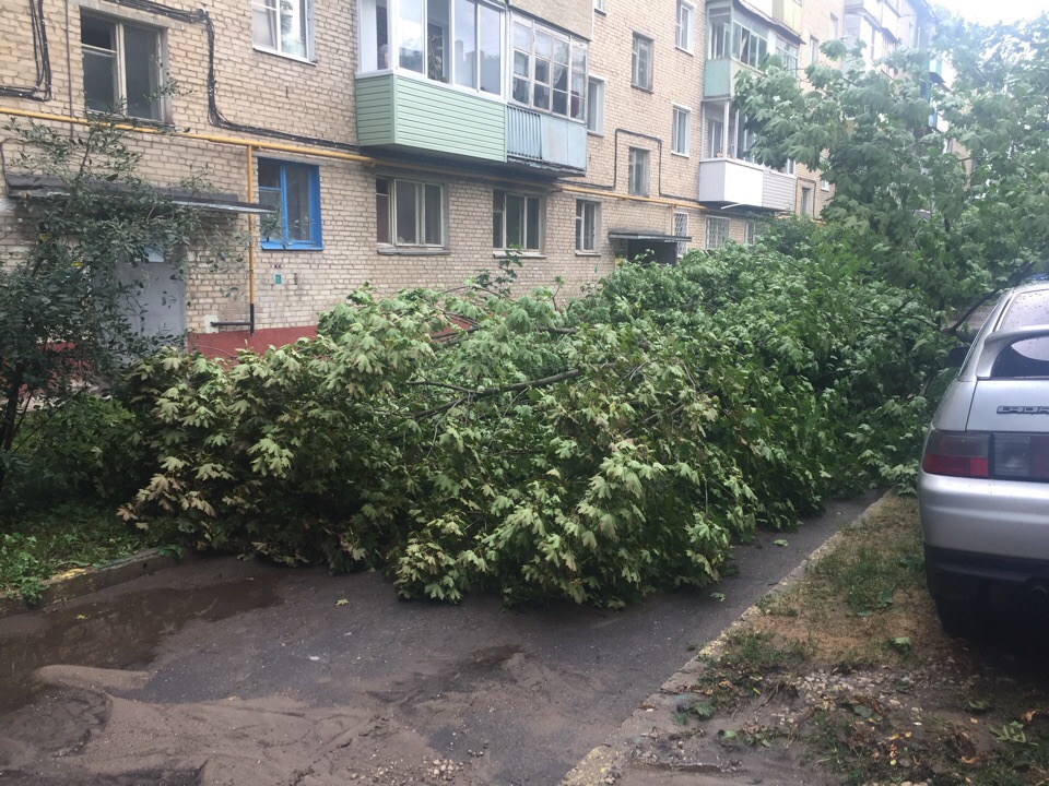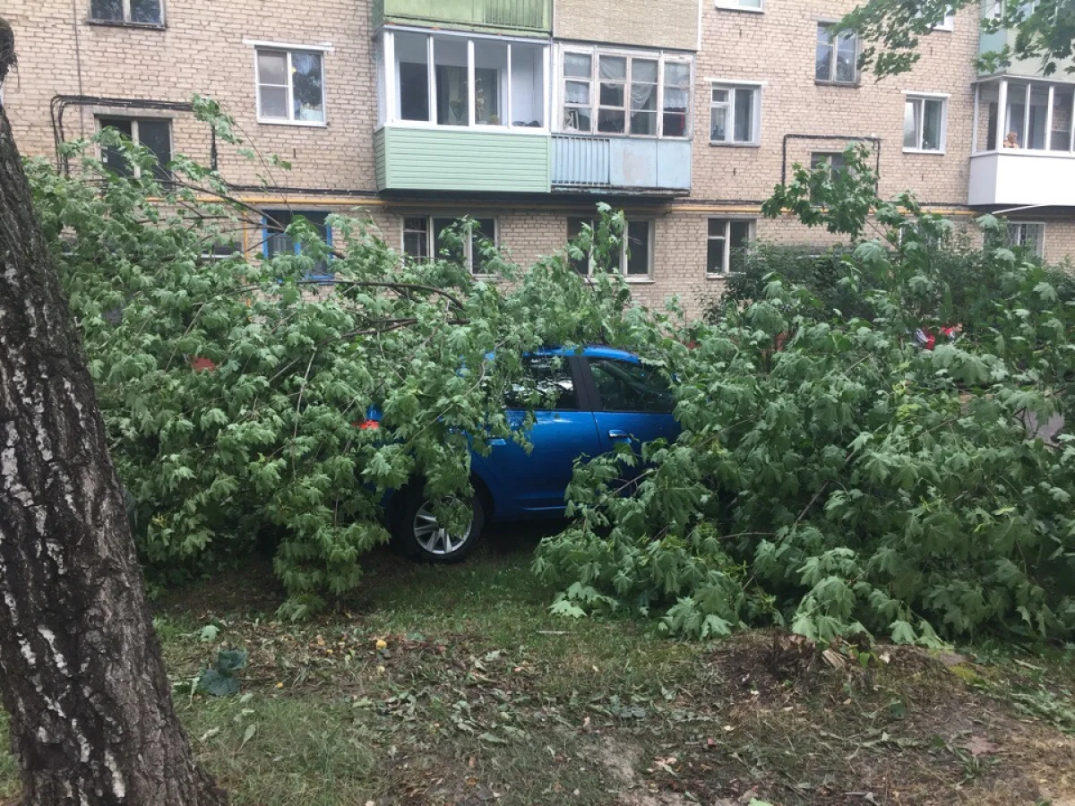 Накануне вечером после сильного урагана огромное дерево придавило припаркованные во дворе машины. ЧП произошло на ул. Руднева.
