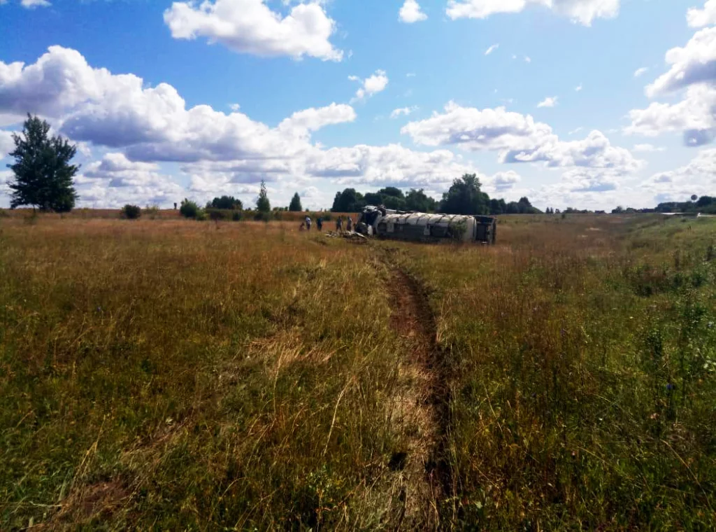 Водитель автоцистерны с полуприцепом «Ивеко Стралис» предположительно не справился с управлением и съехал в кювет, в результате чего цистерна перевернулась.