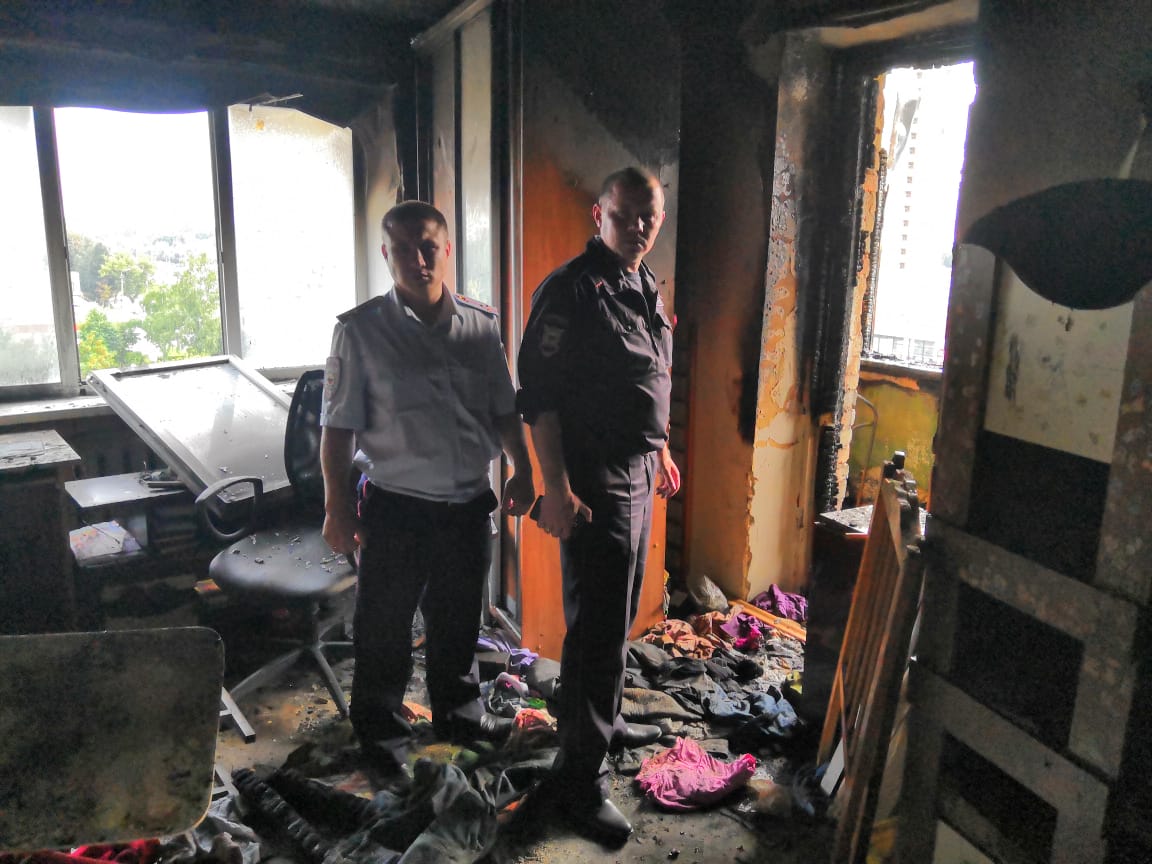 Поскольку окна квартиры выходят на проезжую часть, страшный пожар наблюдали многие горожане, оказавшиеся неподалёку. В это время по служебным делам по пр. Ленина ехали сотрудники отдельного батальона ППС УМВД России Дмитрий Жидовинов, Анастасия Чухланцева, Виталий Рожков и Наталья Демьянова.