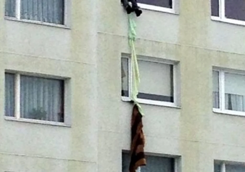 Девочка украла с поста медсестры ручку от окна, открыла его и вылезла на улицу по связанному постельному белью.