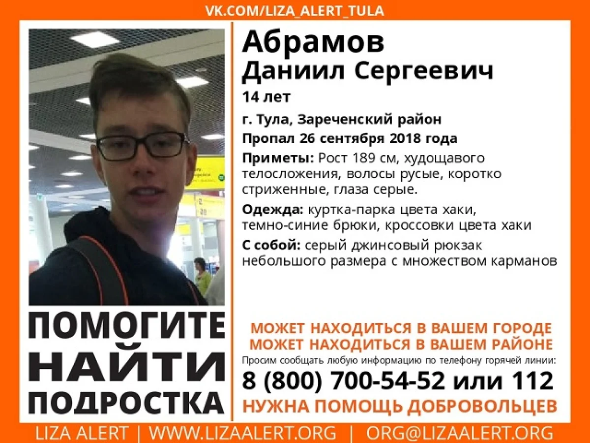 14 -летний Даниила Абрамов пропал 26 сентября.