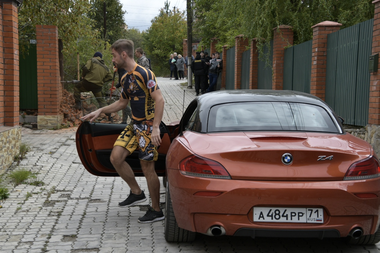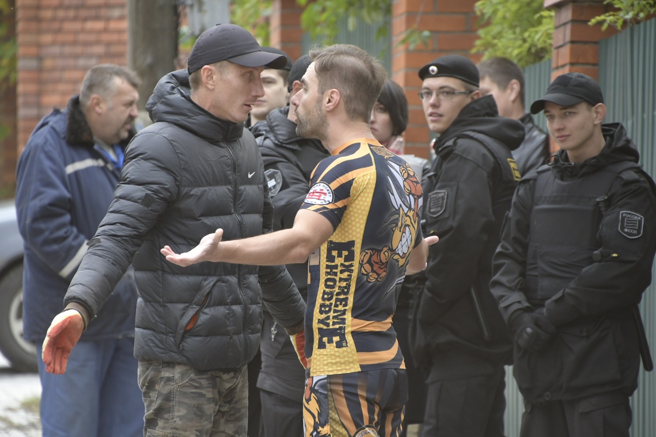 Хозяин дома вышел поругаться с представителями правопорядка. Его жена в разборки вмешиваться не стала, однако выразила уверенность, что все работы незаконны. По её словам, через некоторое время, когда она победит в суде, ей возместят причинённый ущерб.