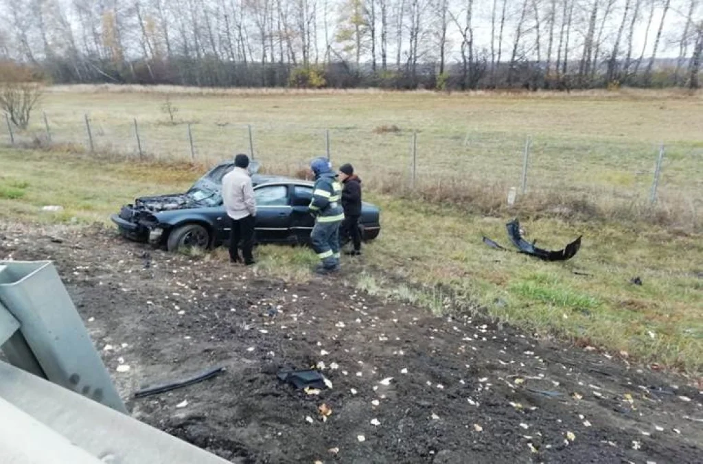 Под Тулой «Фольксваген» протаранил ограждение и опрокинулся в кювет