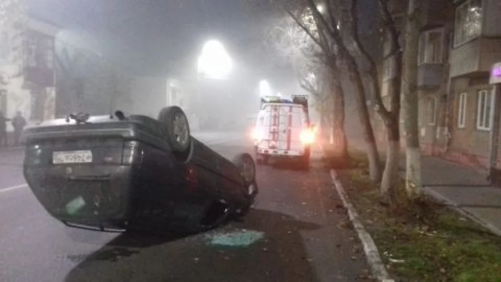ДТП произошло на улице 9 Мая. Машина изначально «запнулась» о бордюр, после чего врезалась в дерево и перевернулась на крышу.