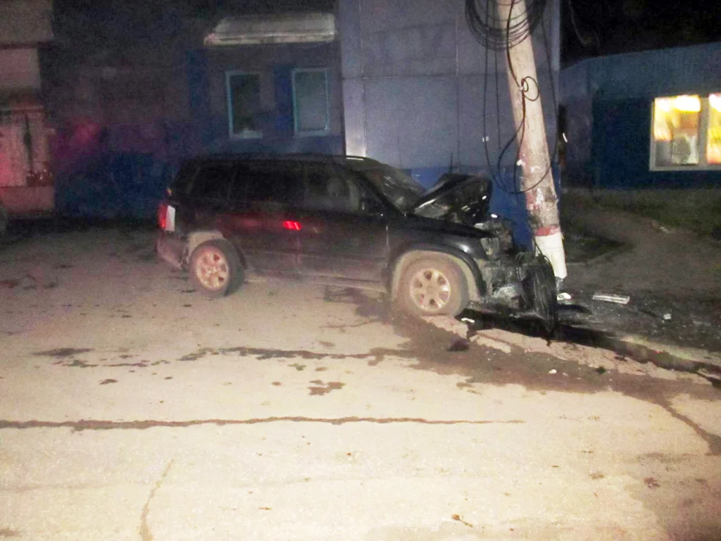 Ночью в Туле водитель внедорожника протаранил столб