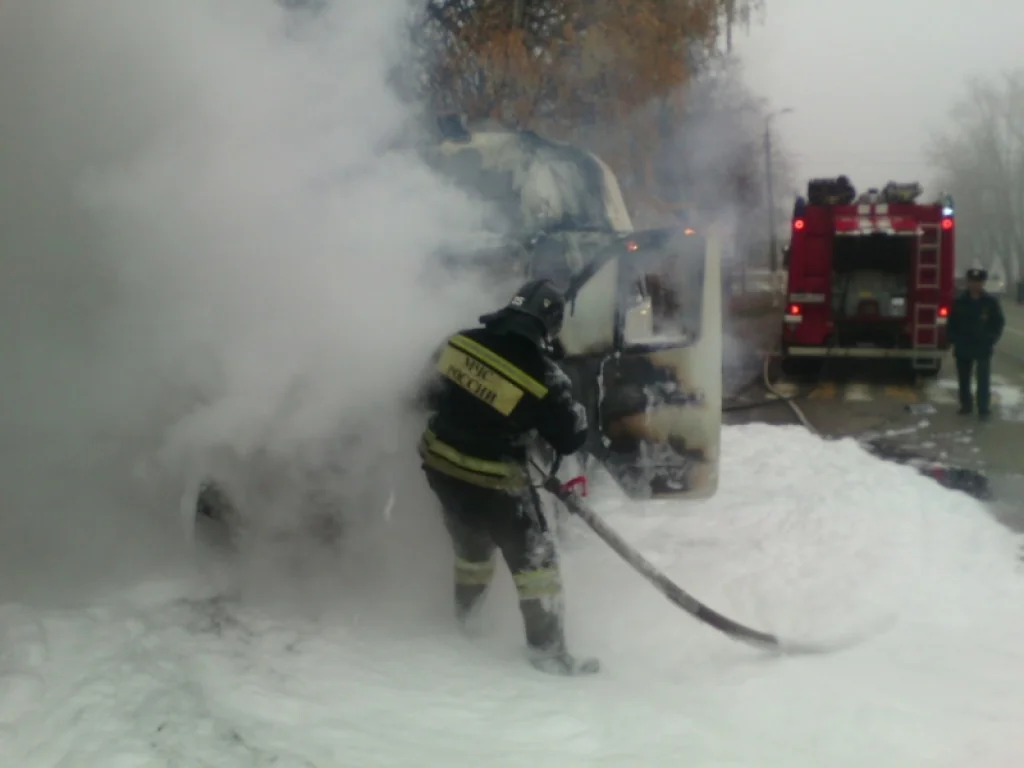В Новомосковске 7 человек тушили пылающую «Газель»