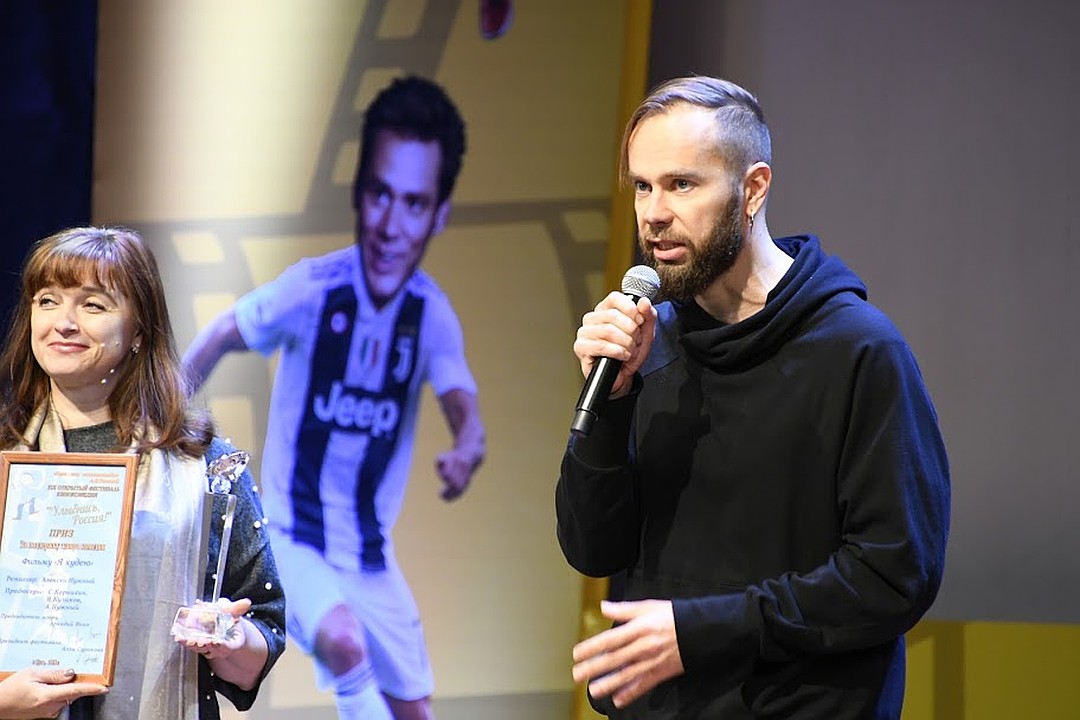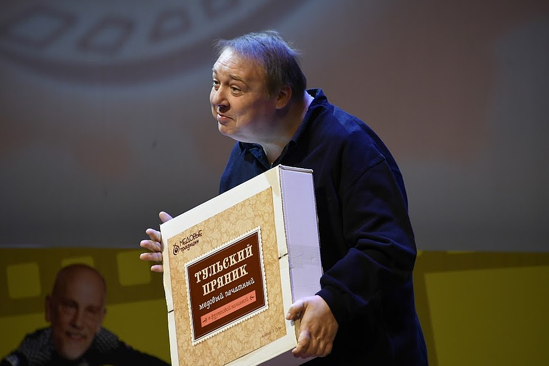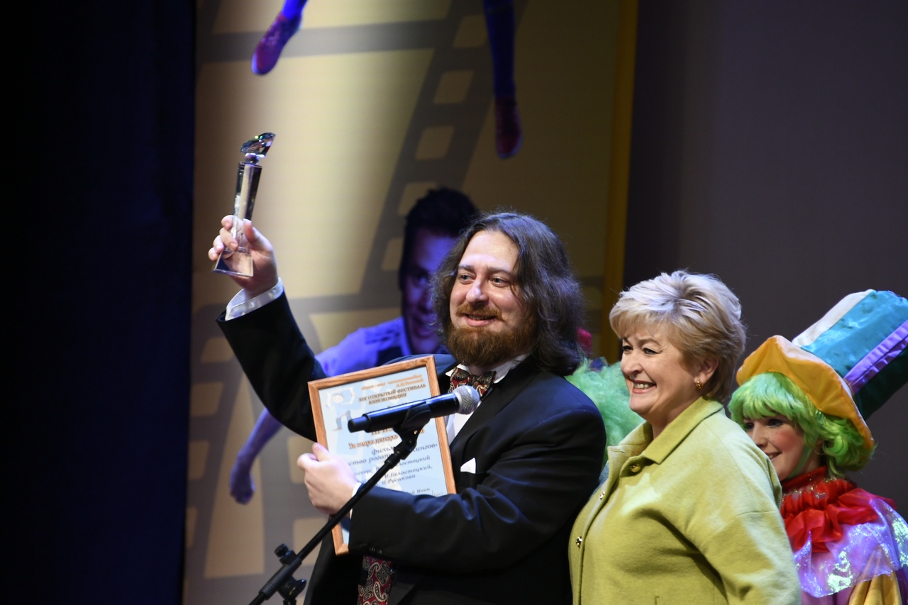 Приз «За самый яркий комедийный дуэт второго плана» из рук мэра Тулы Юрия Цкипури получили артисты Инга Оболдина-Стрелкова и Ян Цапник за фильм «Новогодний переполох».