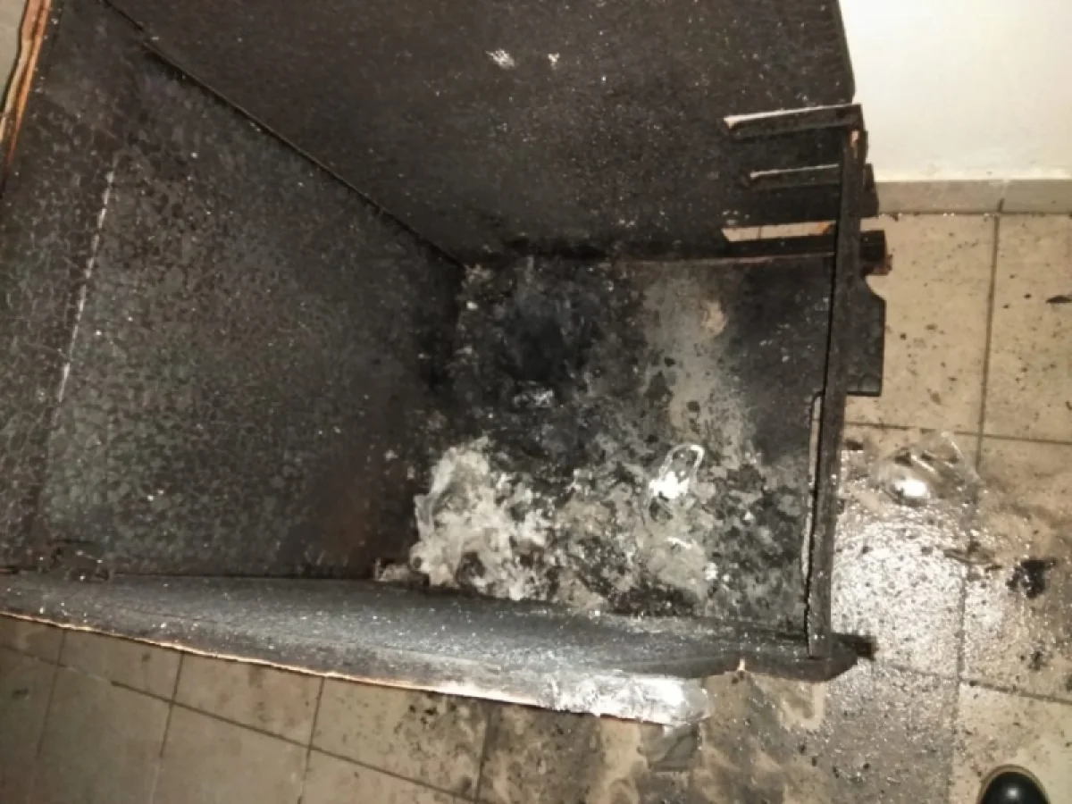 В результате происшествия на лестничной площадке обгорела тумбочка, закоптились стены и потолок.