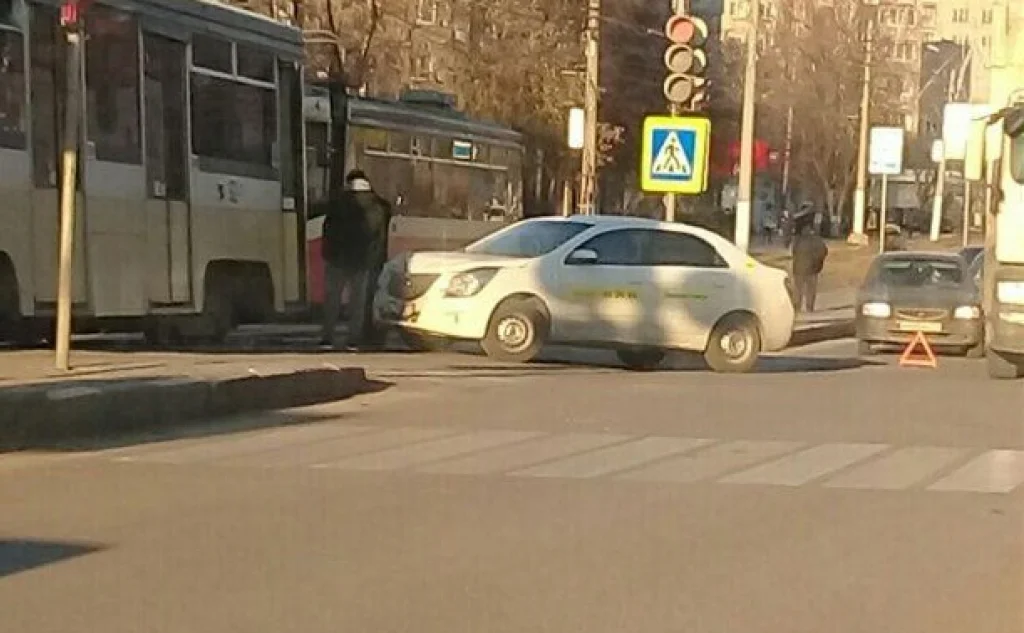 по касательной зацепила трамвай. В аварии никто не пострадал, однако движение трамваев в сторону центрпа было