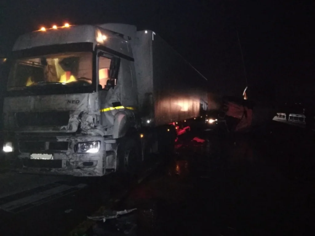 По предварительным данным, водитель грузовика, двигавшегося в северном направлении, сбив разделительное ограждение, выехал на "встречку" и лоб в лоб столкулся с другим грузовиком. После удара в них влетел еще один грузовик, ехавший в южном направлении.
