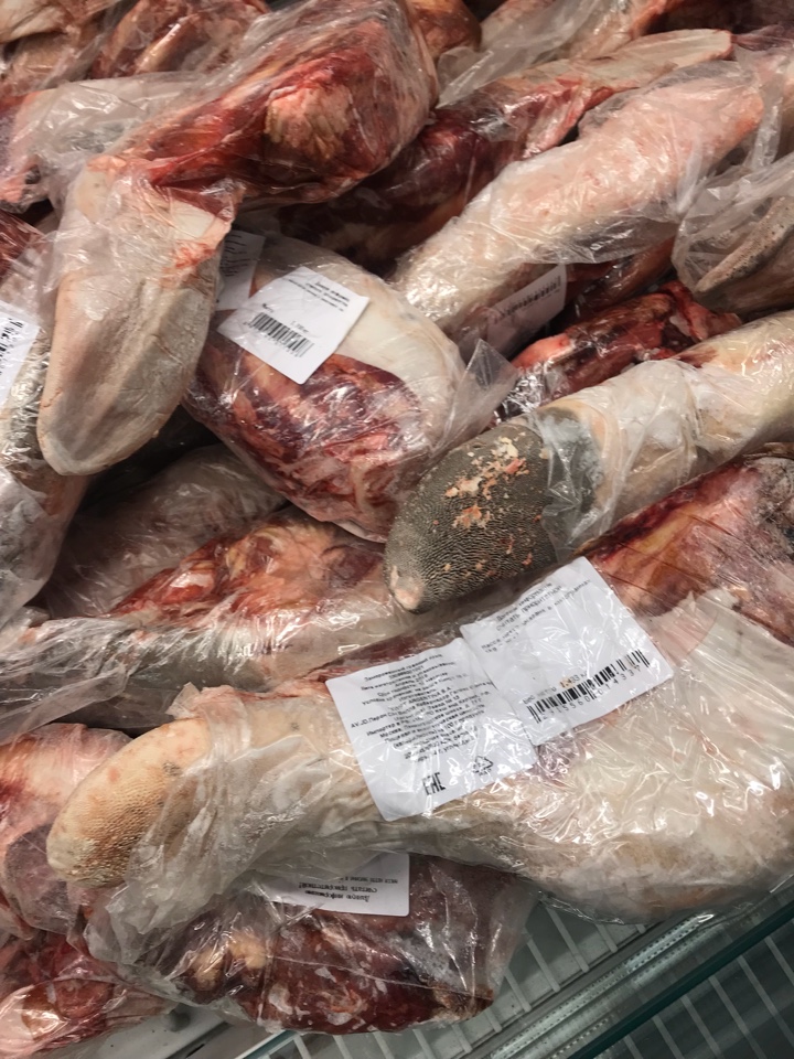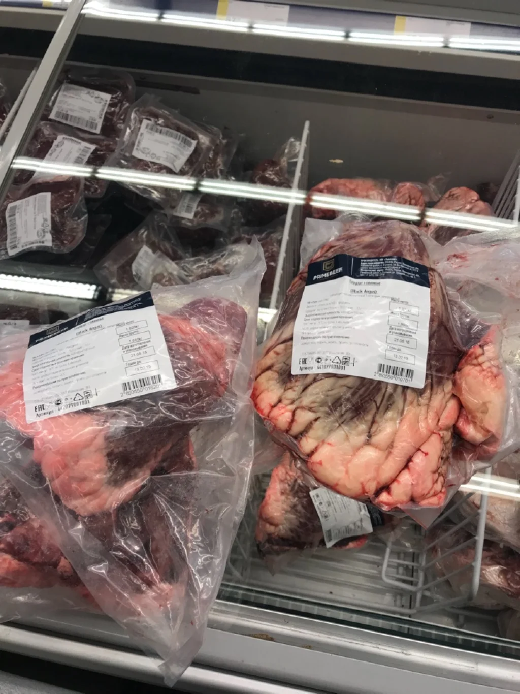 Кроме того, в витринах супермаркета лежала продукция аквакультуры, не имеющая идентификационных признаков (этикетка, маркировка) весом 7,4 кг, а также сердце говяжье (1,6 кг) с нарушенной индивидуальной упаковкой.