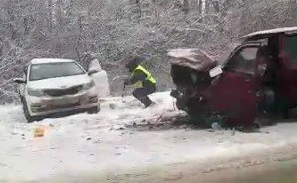 Под Тулой на заснеженной трассе столкнулись «Киа Рио» и «двенашка»