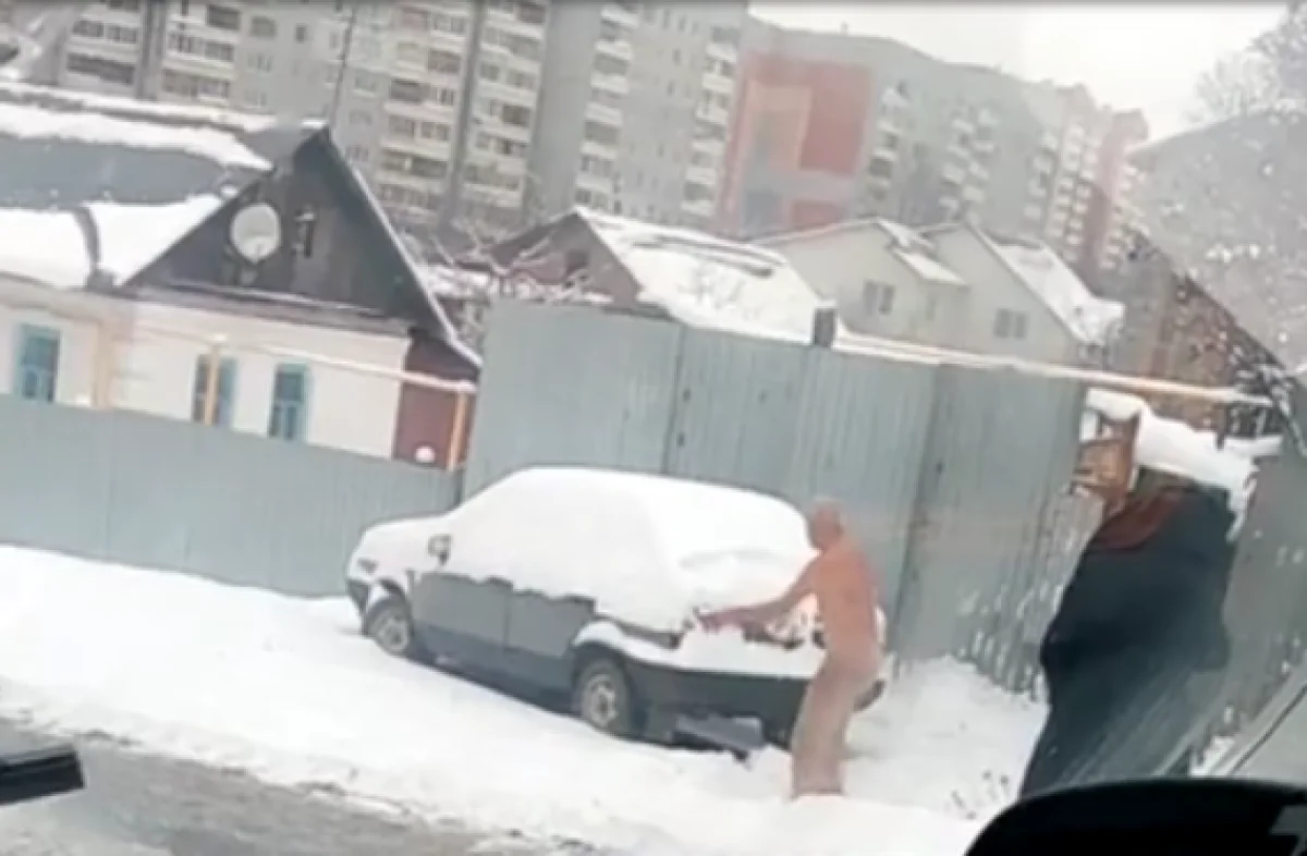На ул. Кутузова абсолютно голый мужчина растирался снегом прямо на обочине дороги. «Любителя суровой закалки»